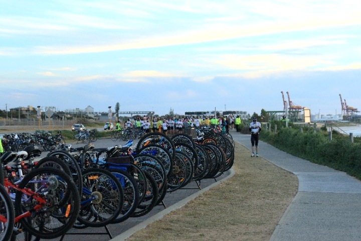 They were followed by the support vehicle driven by Glenn and Lea Longmire. Cyclists were directed to Rack bikes by Scotch college students under Jeremey Murray’s guidance. The two groups came together at Tim’s Memorial just before sunset. The weather and sunset was perfect.