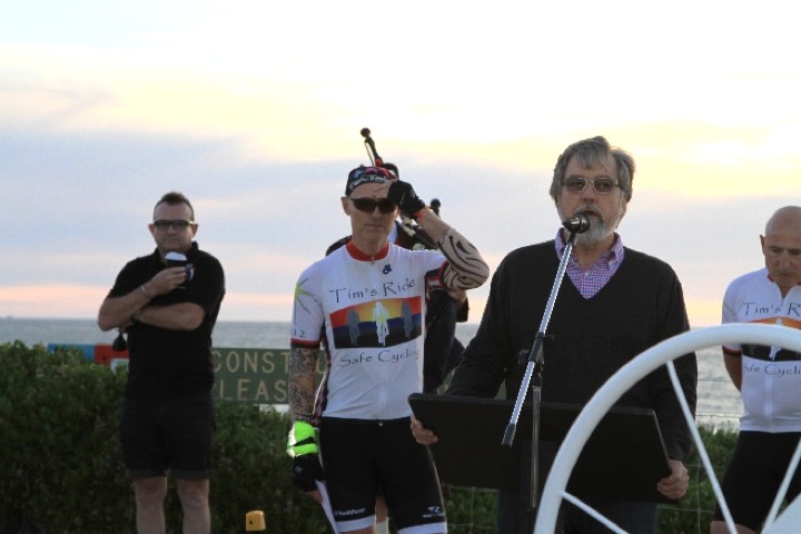 The master of ceremonies James Sutherland introduced Ron Norris, Mayor of the Town of Mosman Park, who welcomed everyone and commented on Mosman Parks commitment to cycling and Tim’s Memorial. Tim’s dad, Ian, spoke about the terrible events of Tim’s Death, the events leading to the construction of the memorial and development of Tim’s Ride.