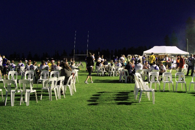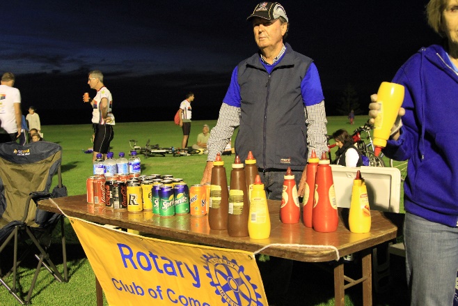 Harvey Field was ready and waiting under the guidance of Hazel Frame. The Rotary members had done a wonderful job so the sausage Sizzle was ready for the hungry riders who were joined by the police and support crew. While people enjoyed the snack James Lush interviewed several over 55 members about their adventures riding across Australia. He then thanked all the many sponsors and supporters and invited everyone to stay on and have fun.
